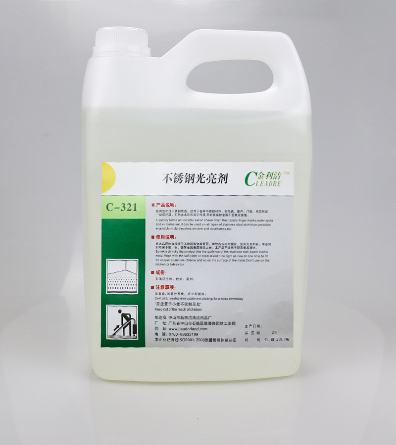 產(chǎn)品優(yōu)點(diǎn):本品特有的防銹、清潔和上光成份,能有效護(hù)理不銹鋼表面,降低擦后不銹鋼面的油膩感,增加不銹鋼面光澤度,增強(qiáng)不銹鋼面防塵抗污作用。保持金屬不受氧侵蝕,并可防止手印,水印。適用于各種不銹鋼材料,如電梯、手扶梯、門等地方的清潔保養(yǎng)。